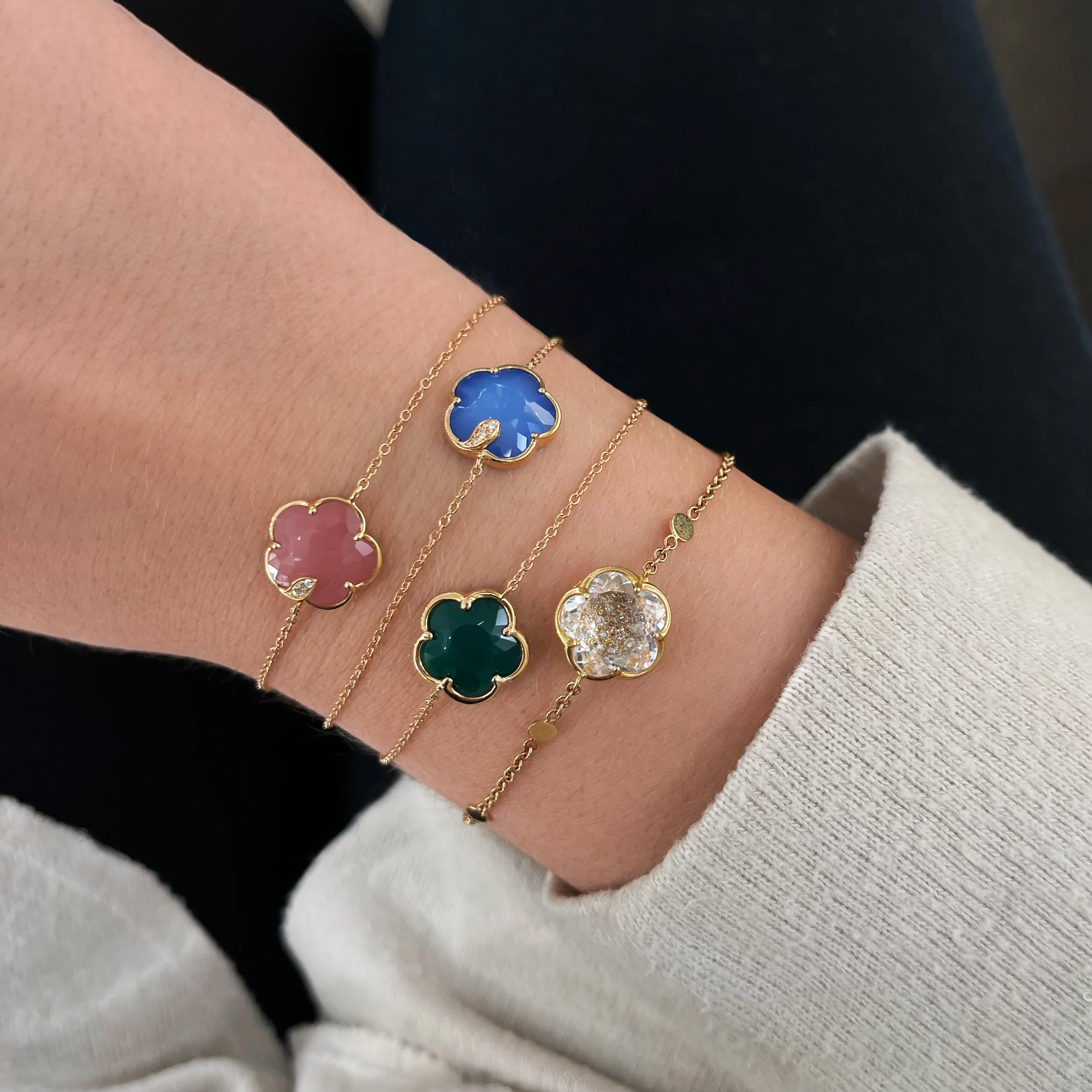 Petit Joli Red Carnelian Flower Bracelet in 18K Rose Gold with White and Champagne Diamonds