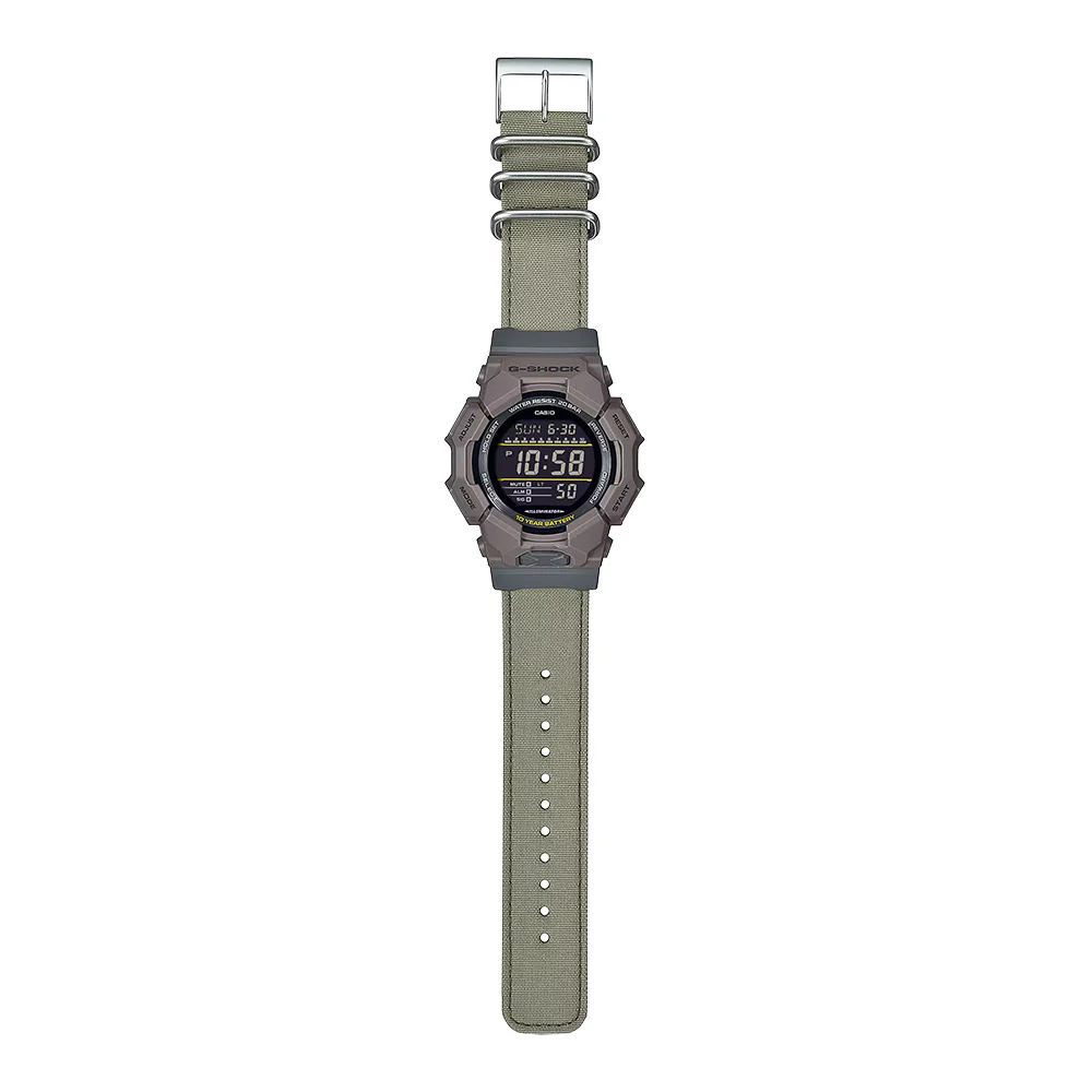 The G-SHOCK GD-010CE-5 combines bold, large-case design with long-term reliability, featuring a 10-year battery and signature G-SHOCK shock resistance built for demanding everyday use. Designed with sustainability in mind, key resin components are crafted from bio-based resin, while the durable band uses CORDURA® re/cor™ made from recycled PET fibers and colored with FOOD TEXTILE natural dyes for a distinctive, earth-toned finish. Comfortable, easy to wear, and uniquely styled, this brown digital watch transitions effortlessly from casual to work settings, with each piece offering subtle variations in color due to its naturally dyed materials.